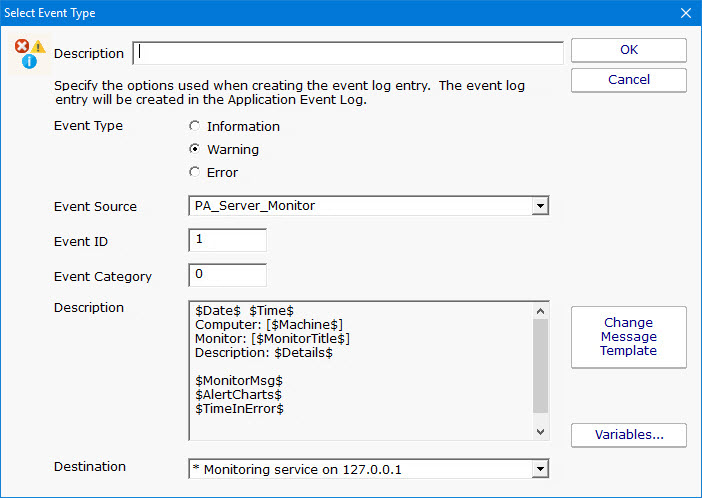 The event will be written to the specified monitoring service's Application Event Log.
