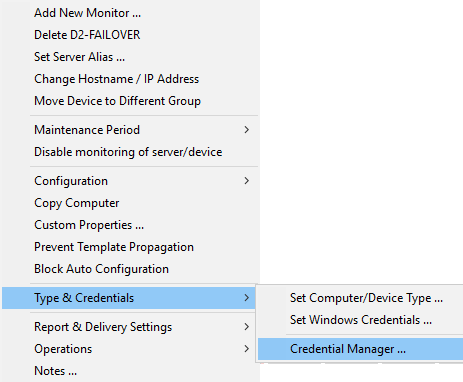 The Credential Manager is accessed by right-clicking on any device and going to Type & Credentials > Credential Manager, or from the Settings navigation button.