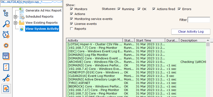 The View System Activity item is the place to go if you ever want to see what the monitoring service is currently working on. You can choose to show or hide the following activity types: