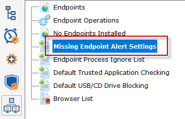 These settings are accessed in the Endpoint Alert Settings node in the Console.