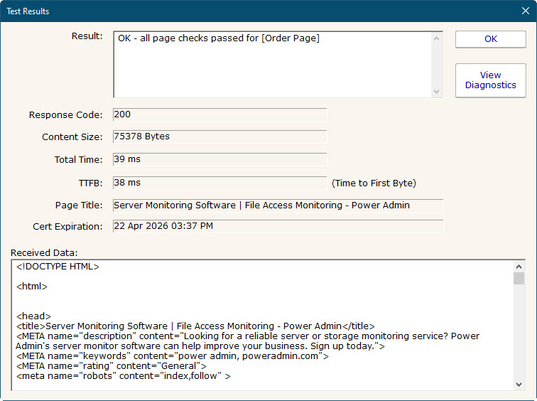The Web Page Monitor lets you define one or more web pages or web resources that should be checked. You can check return codes, data size,