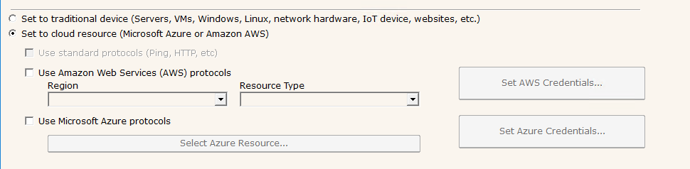 Select the "Set to traditional device" for adding most servers/devices, and "Set to cloud resource" if adding something in AWS or Azure to be monitored.