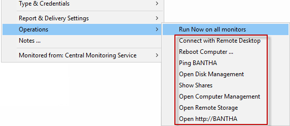 When you right-click a server in the PA Server Monitor Console, there is an Operations menu which can do various things to the selected device.