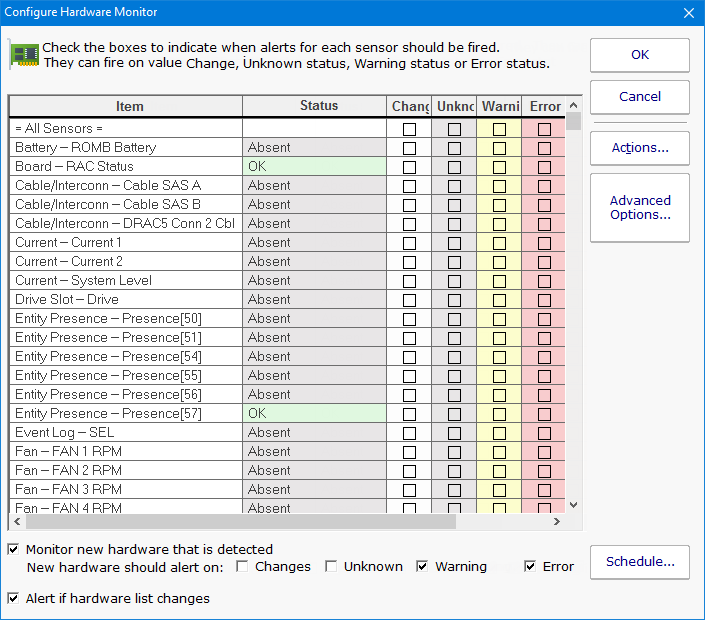 At the bottom of the monitor you can indicate what should happen if the list of hardware components changes. This might indicate hardware is being added or removed from a system.