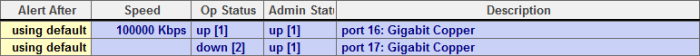 The first port, IsMonitored, indicates whether a port is being monitored. Ports that are monitored get a different color. Cells that are yellow can be edited. That means the Alias, and In Threshold and Out Threshold columns can be changed for monitored ports.