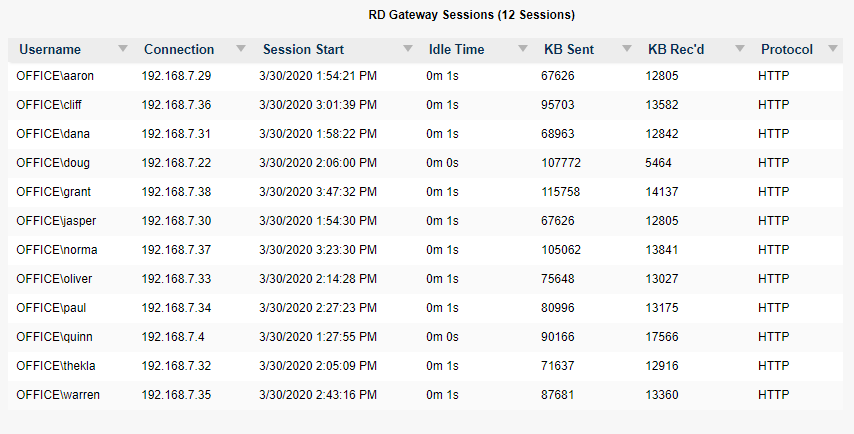 The RD Gateway monitor is used to periodically retrieve a list of Remote Desktop sessions connected to the Gateway