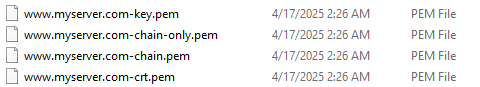 For this example, let's assume you created a certificate for www.myserver.com. You will end up with these files in the CA folder:
