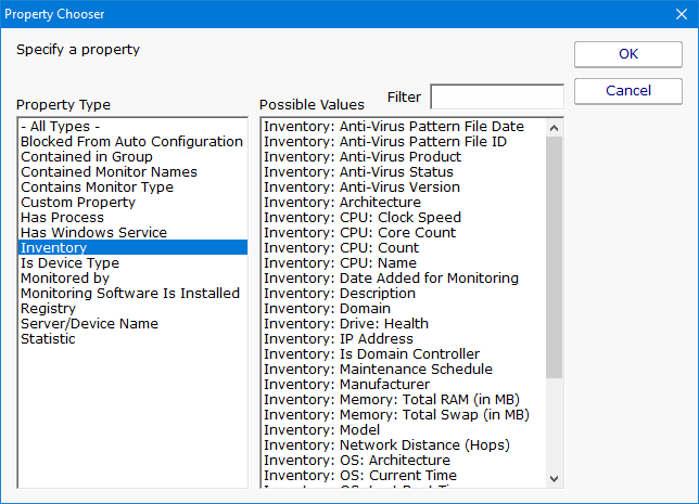 Once the target servers are specified, you can select the output columns that should be shown. Additional inventory property values are being added all the time.