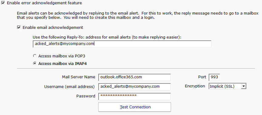 If your organization tracks alerts via Error Auditing, then being able to acknowledge an alert by simply replying to an email is a useful feature. When this feature is enabled:
