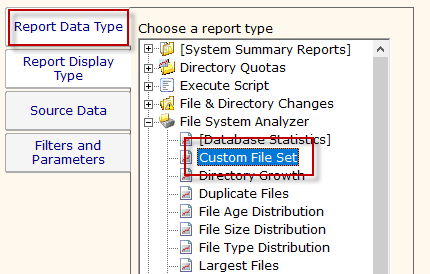 To find these files (after the File System Analyzer has had a chance to complete at least one scan), run a Custom File Set report as shown below:
