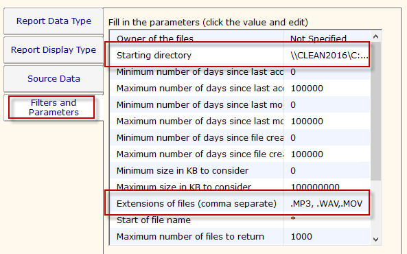 Select a Report Display Type, and Source Data (which contains the target directory that you want to check). Note that one display type is a .CSV file so you can easily import that list of files found into Excel, or some other application.